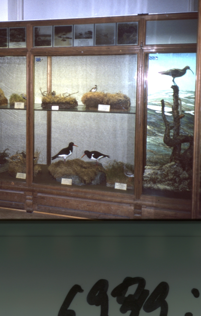 'Montrarna i fågelgången fotograferade före restaurering. :: Svenska fåglar. Bilogiska grupper. Vadare. :: :: Ingår i serie med fotonr. 6939:1-54.'