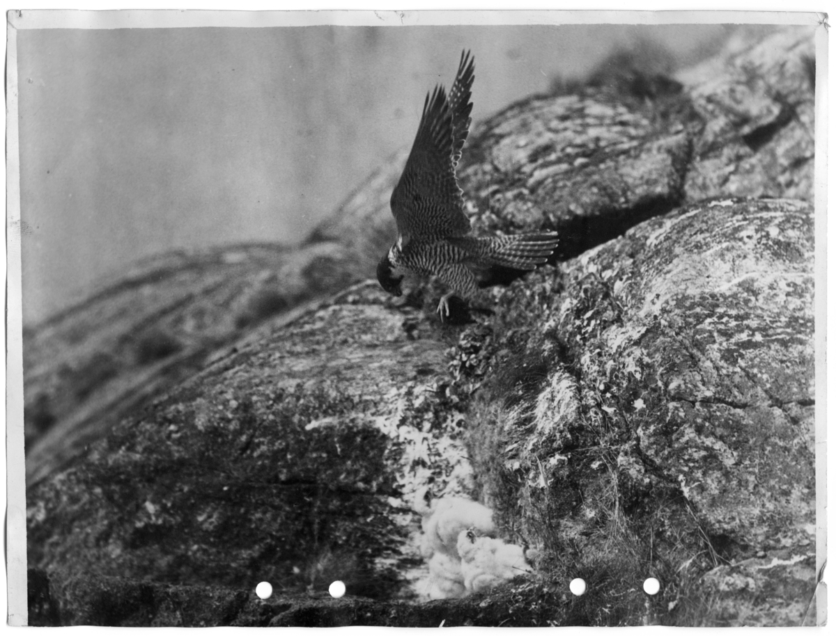 '1 rovfågel på väg att slå ner på boet med ca 2 ungar. :: :: Ingår i serie med fotonr. 7035:1-12.'