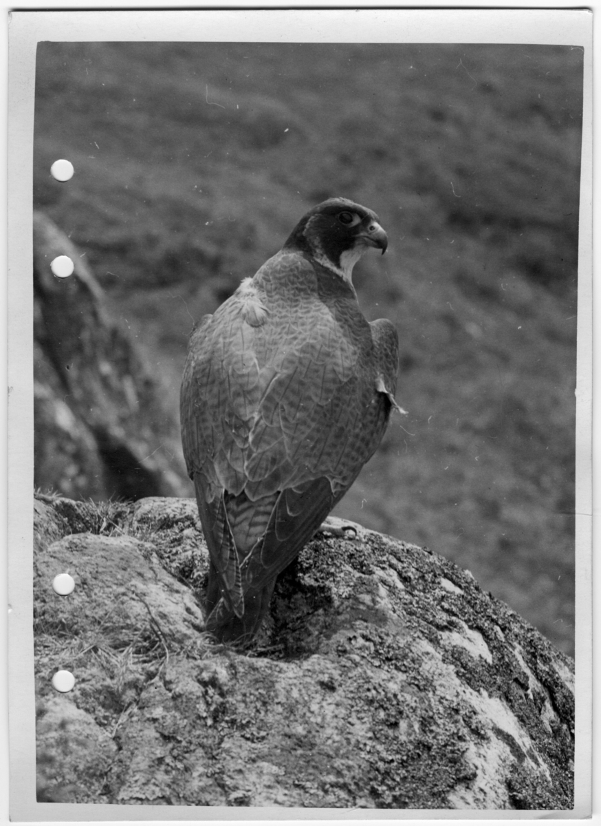 '1 rovfågel på klippa. :: :: Ingår i serie med fotonr. 7035:1-12.'