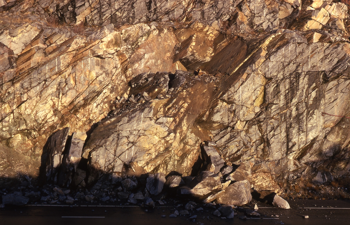 'Bergras. :: :: Ingår i serie med fotonr. 7022:1-12 med bilder från bergskred i Kungälv.'