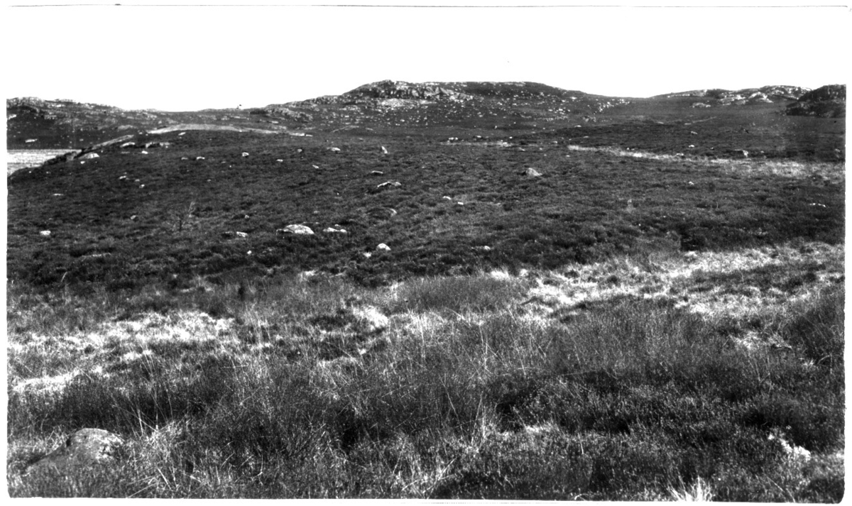 'Bildtext:'' Ljungmark. Kärra, Mölndals stad.'' Vy med ljungklädd mark och berghällar. :: :: Fotonr. 7046:1-84 indelade som ''Landskapsbilder från Göteborgs- och Bohus län.'' Ingår i serie med fotonr. 7046:1-383, 7047:1-33 och 7048:1-67 med bilder från Länsjägmästare John Lindners bildarkiv.'
