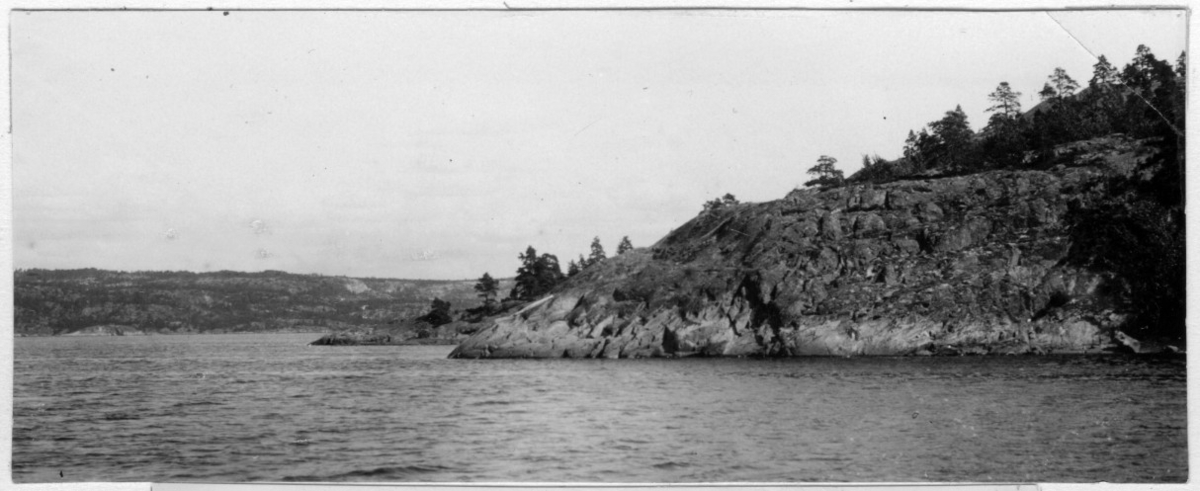 'Bildtext: ''Bohusläns nordligaste udde, Idefjorden, Lommelands socken. I bakgrunden Norge.'' Vy över kalt berg och hav. :: :: Fotonr. 7046:1-84 indelade som ''Landskapsbilder från Göteborgs- och Bohus län.'' Ingår i serie med fotonr. 7046:1-383, 7047:1-33 och 7048:1-67 med bilder från Länsjägmästare John Lindners bildarkiv.'