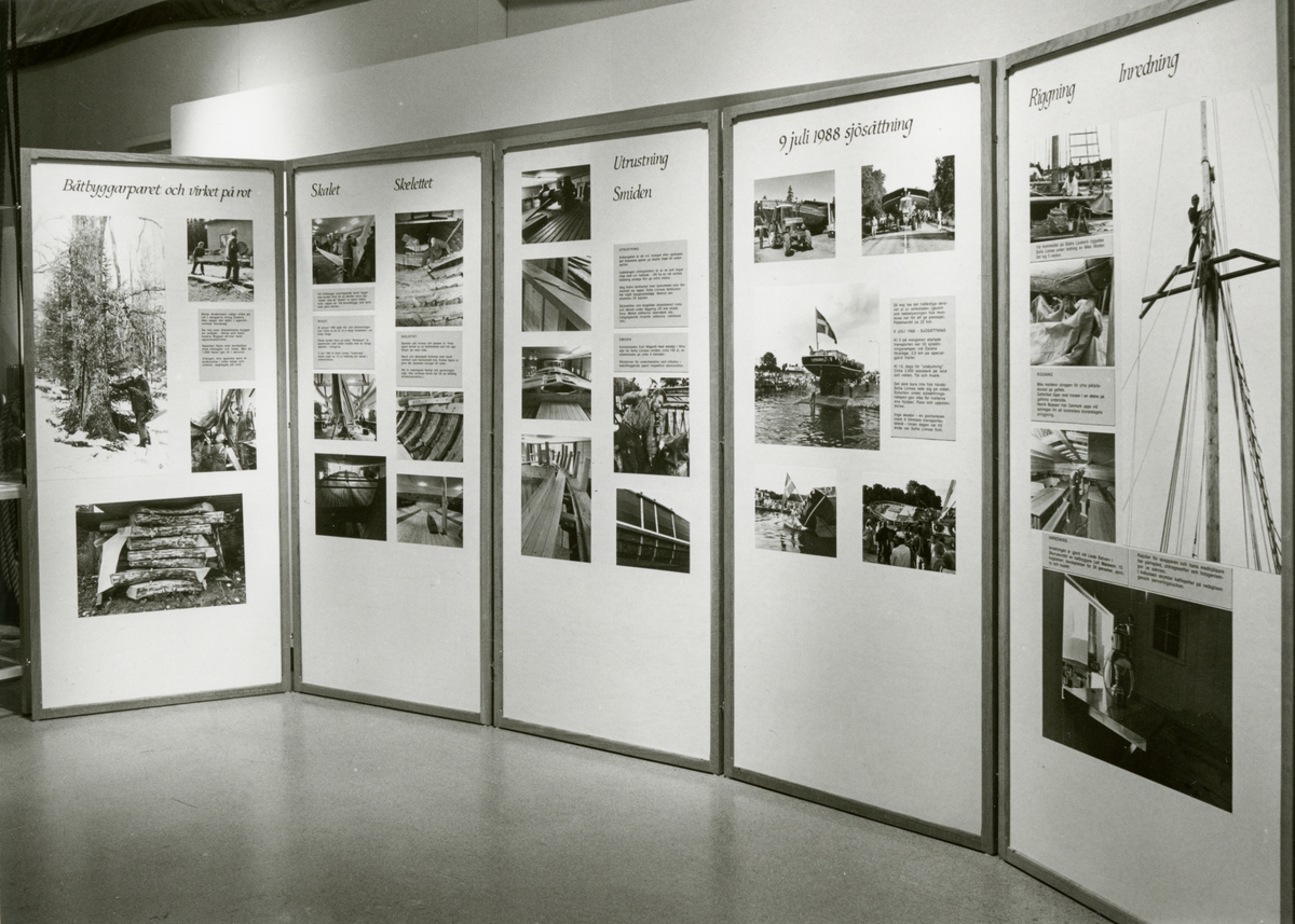 Utställningen "Vedjakten Sofia Linnea från modell till verklighet". Skärmutställning men fotografier och text om arbetet med återskapandet av SOFIA LINNEA.