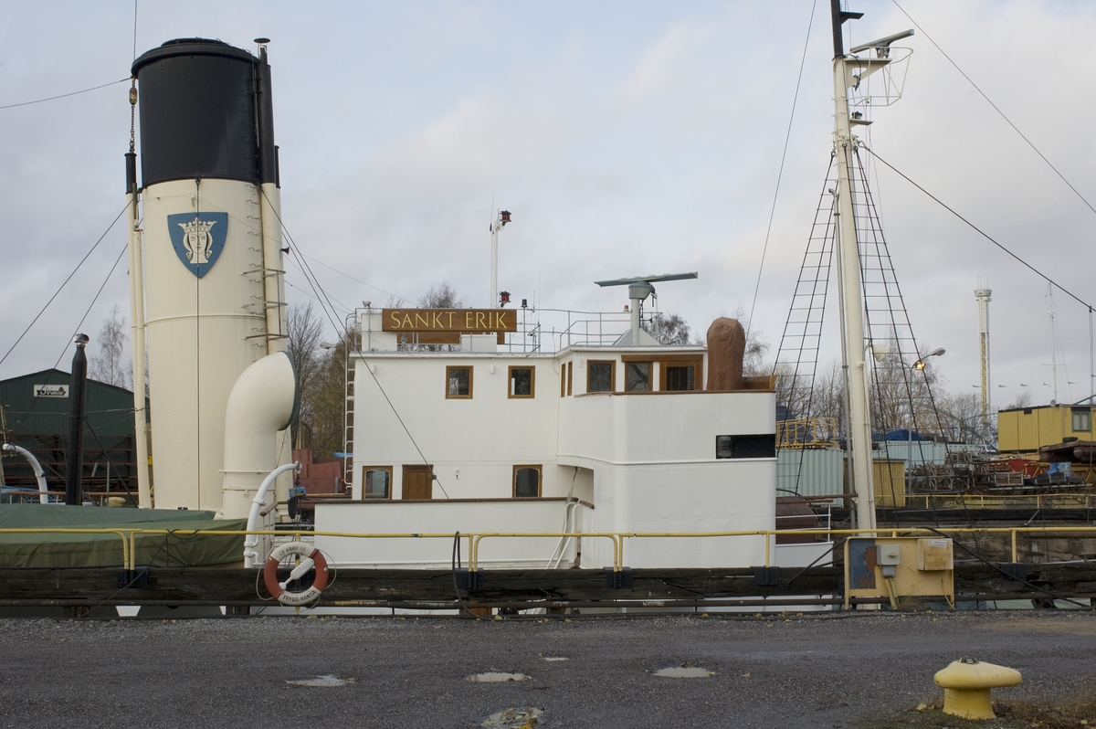 Isbrytaren Sankt Erik vid dockan på Beckholmen för underhållsarbete, november 2005. I bild syns kommandobryggan.