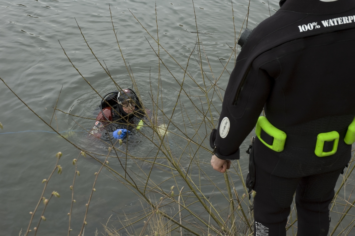 Marinarkeologer på Lilla Essingen maj 2005.