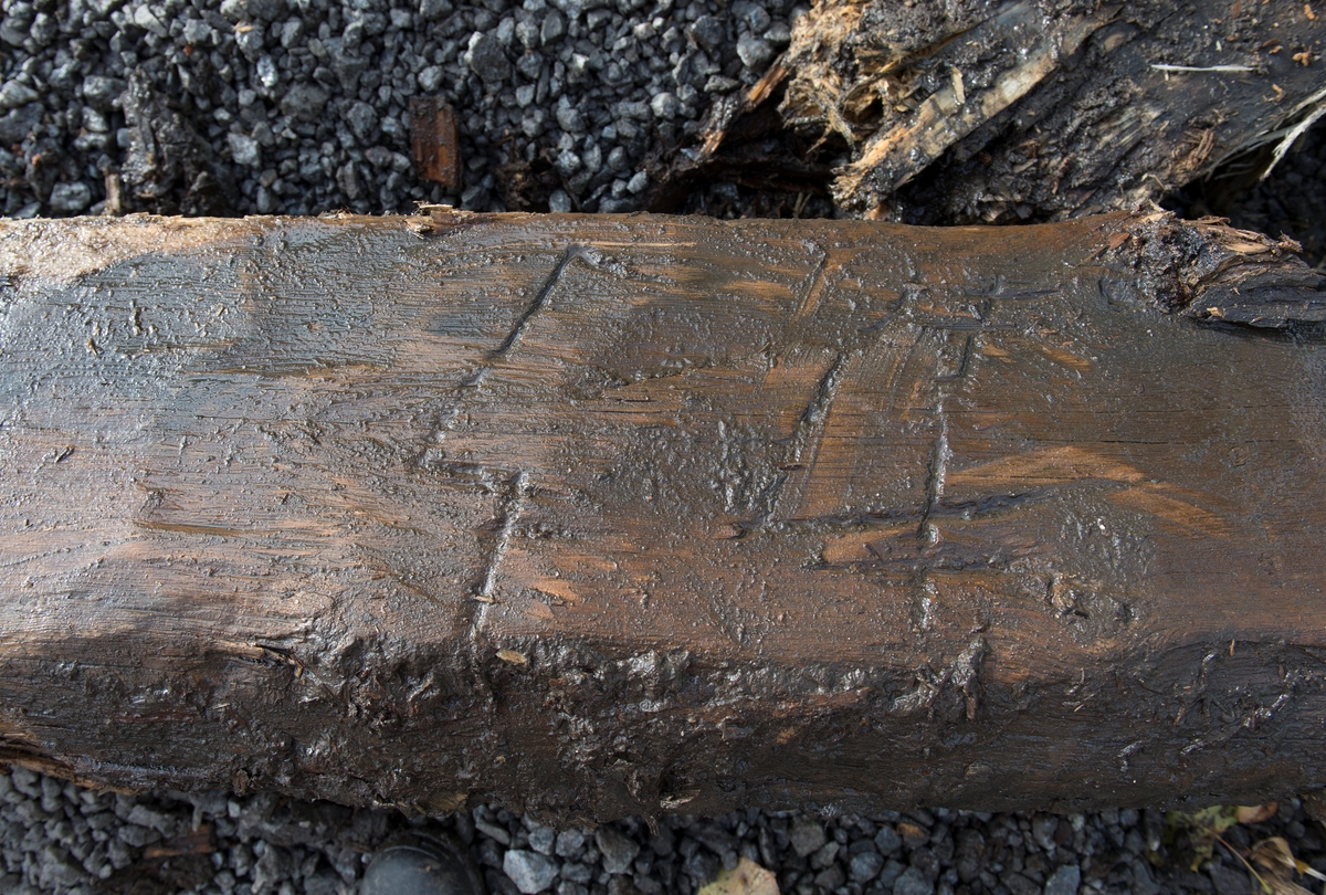 Titel: Vrak hittat sommaren 2017 under kajrenovering på Skeppsholmen, Stockholm. Har identifierats som Gustav II Adolfs flaggskepp Scepter (Spiran), sjösatt 1615. Skeppet deltog i flera sjötåg under kungens eget befäl innan det kasserades och återanvändes som utfyllnad vid anläggningar på Skeppsholmen år 1639.