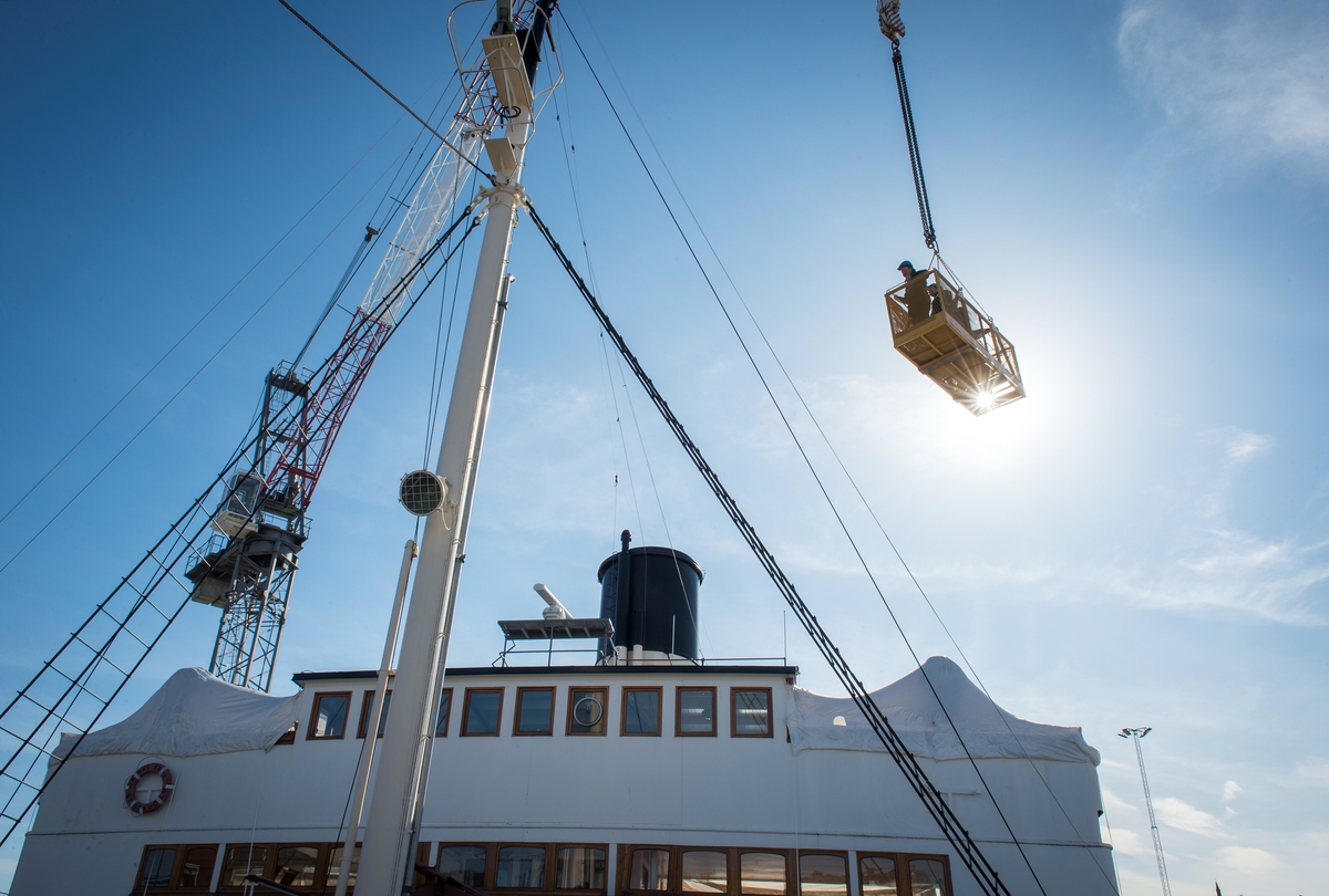 Isbrytaren SANKT ERIK till dockan på Beckholmen för en rutinkontroll.