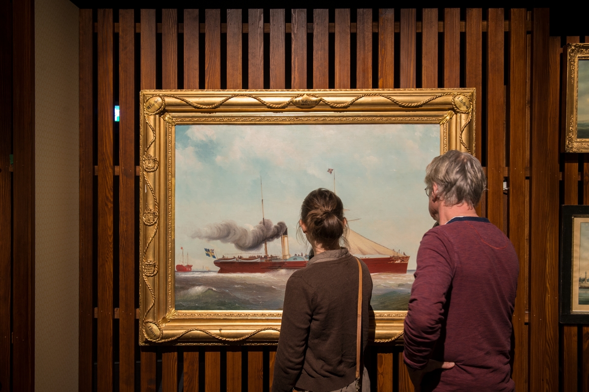 Utställning "Älskade skepp" på Sjöhistoriska, tavlor från museets samlingar.