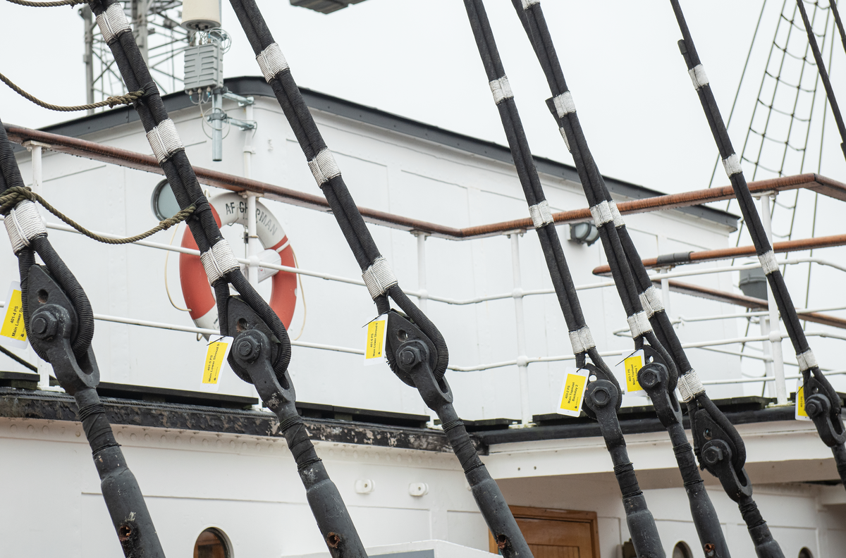 HMS Af Chapman, (vandrarhem) i docka, Beckholmen. Renoverar riggen.