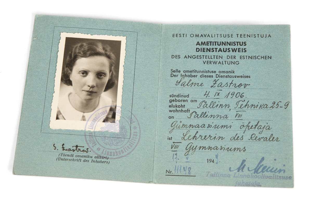 Estniskt yrkesintyg utfärdat under tysk ockupation.