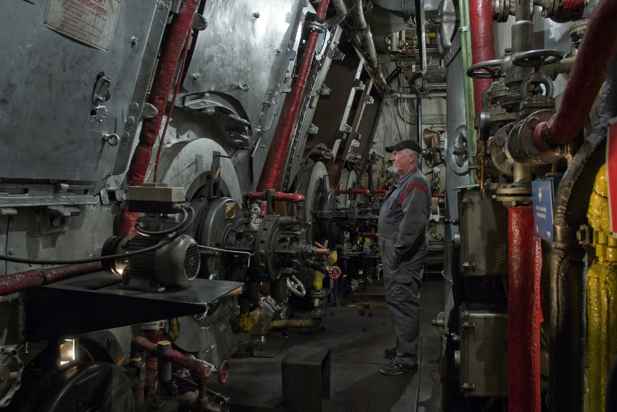Personal i pannrummet ombord på isbrytaren Sankt Erik.