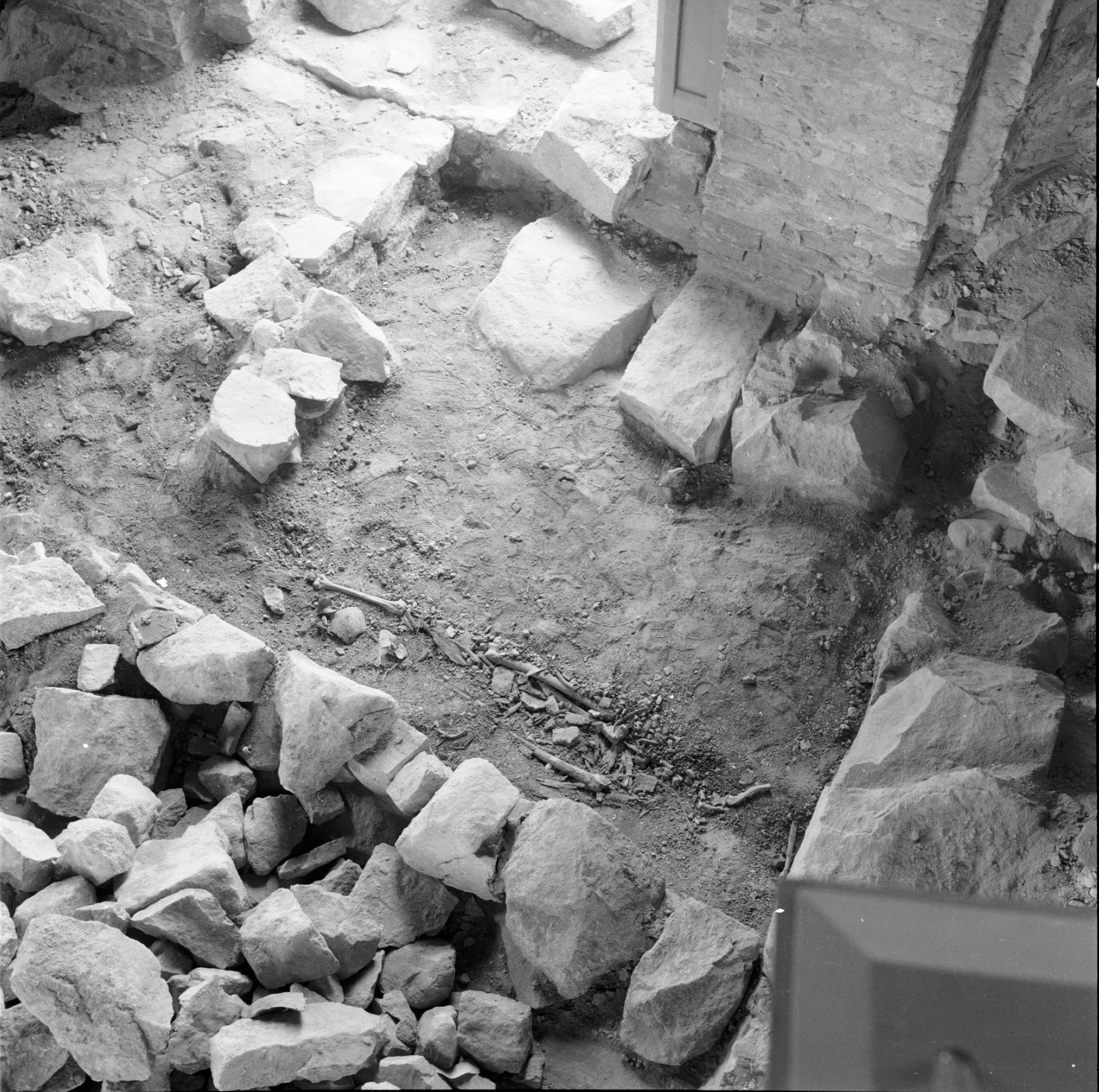 Kyrkan under ombyggnad. Grav i hörnet mot nordöst.
