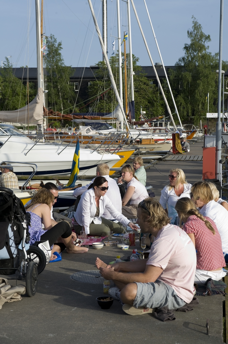 Båt in bio i Wasahamnen, visar "Pirates of the Carribean"