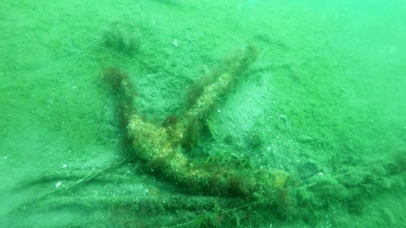 Stockankaret som påträffades i mitten av sundet.