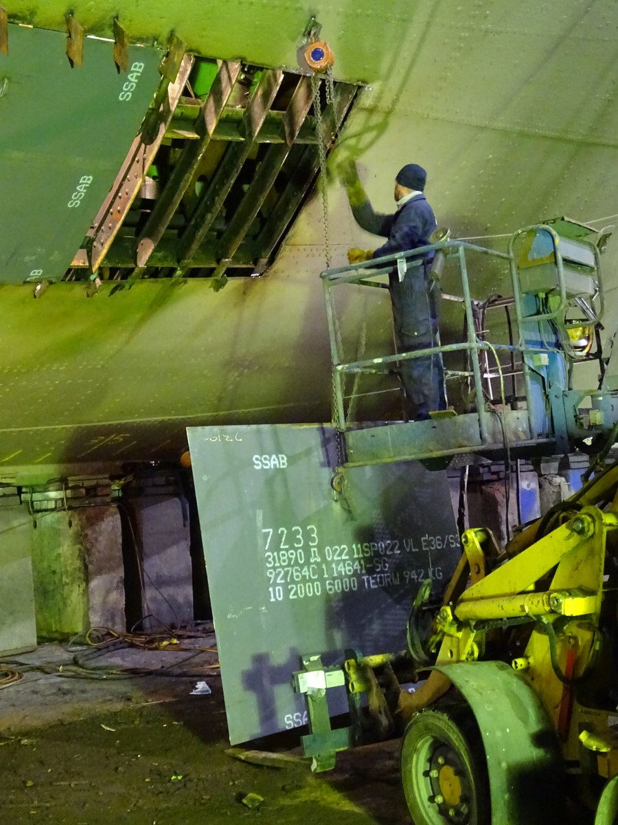 Isbrytaren SANKT ERIK på Stockholms Reparationsvarv. Ersättningsplåt svetsas fast i skrovet.