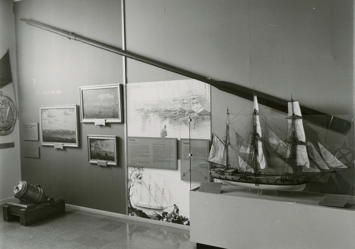 Den permanenta utställningen fotograferad 1987. Del av utställningen som handlar om Arméns flotta och slaget vid Svensksund 1790.