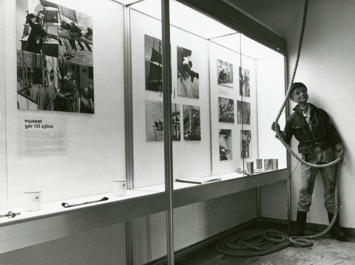 Utställning i trappmonter om skolskeppet CHRISTIAN RADICH. "Museet går till sjöss". Föremål med anknytning till CHRISTIAN RADICH samt fotografier från seglatsen.