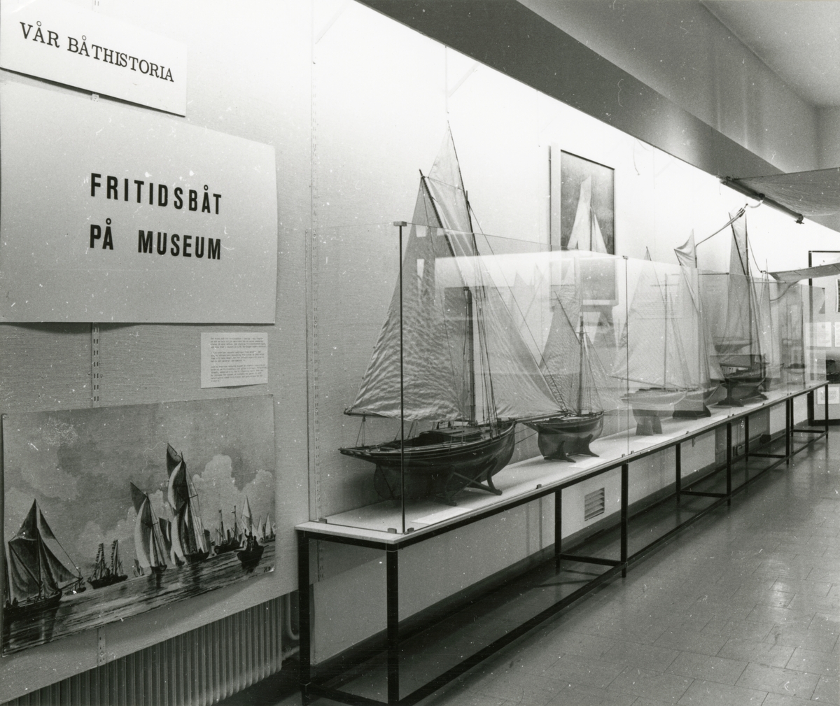 Utställningen "Fritidsbåtar på museum". "Vår båthistoria", inledningsdelen av utställningen där konst och fartygsmodeller av segelbåtar visas.