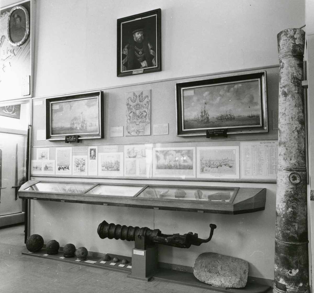 Utställning i Örlogsavdelningen. Överblick av utställningsinteriör med bl.a. porträtt av Claes Christersson Horn.