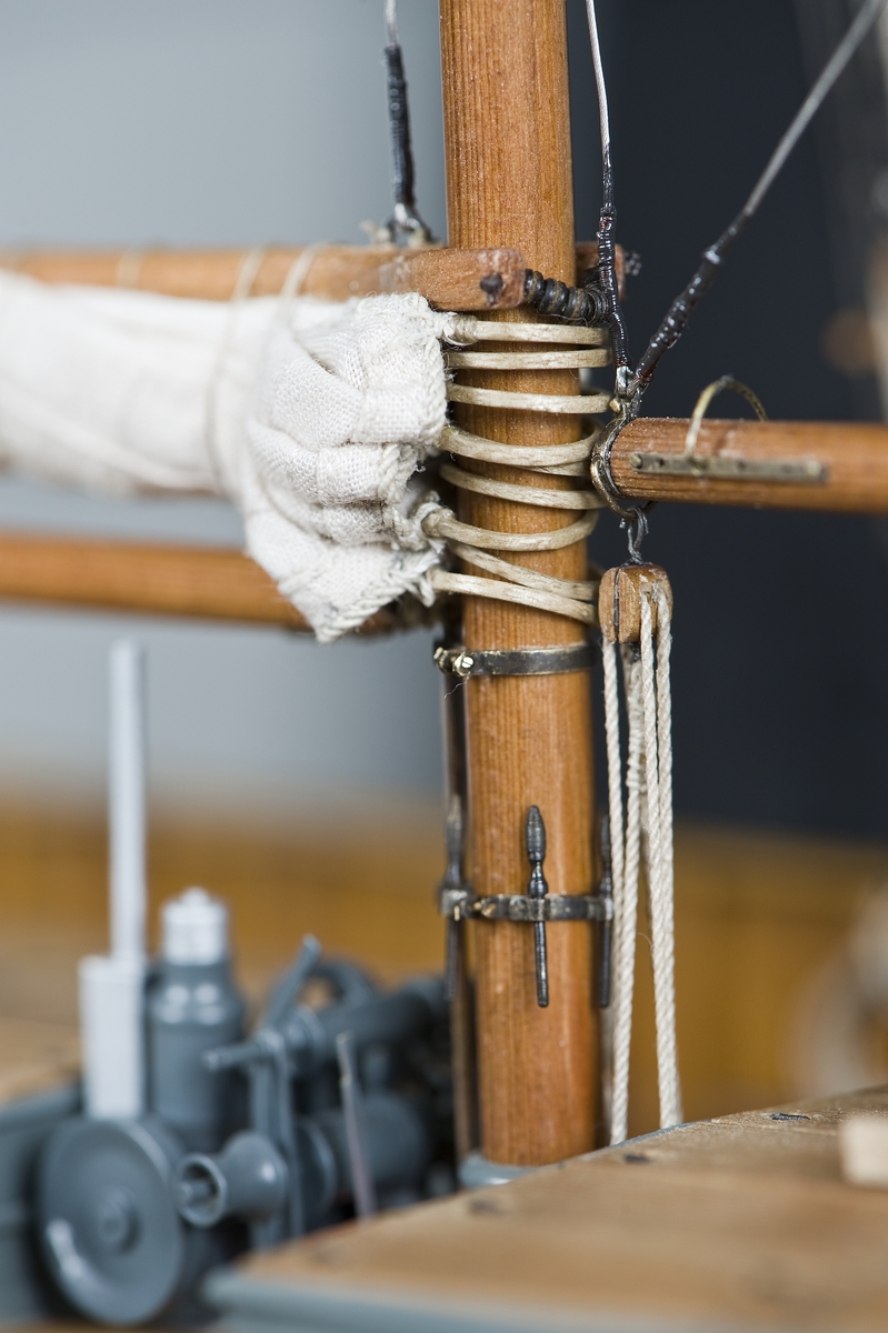 Titel: Detaljbild av modell av tremastskonaren BALTICA, byggd i Sjöhistoriska museets modellverkstad av Stefan Bruhn och Jan Claesson