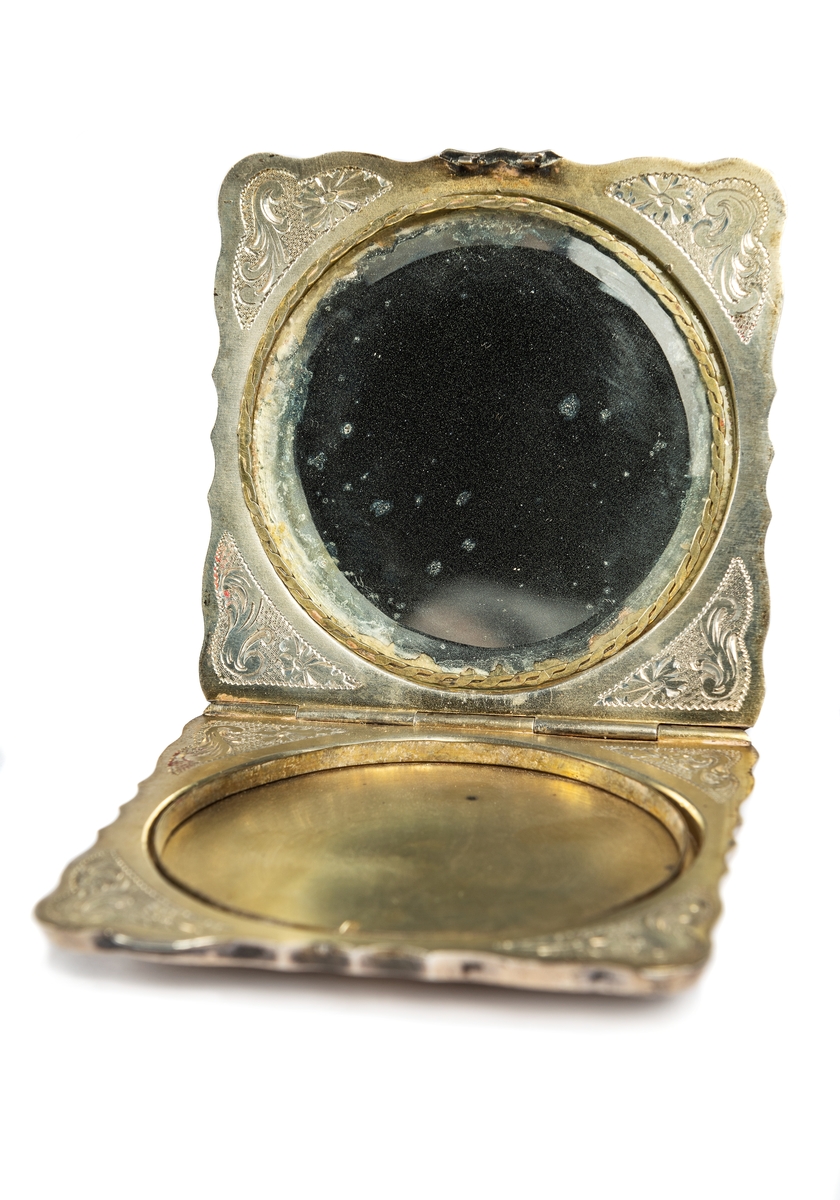 Spegeldosa som togs med av 24-åriga Valentina Dabre på flykt från Riga, Lettland till Sverige i oktober 1944.