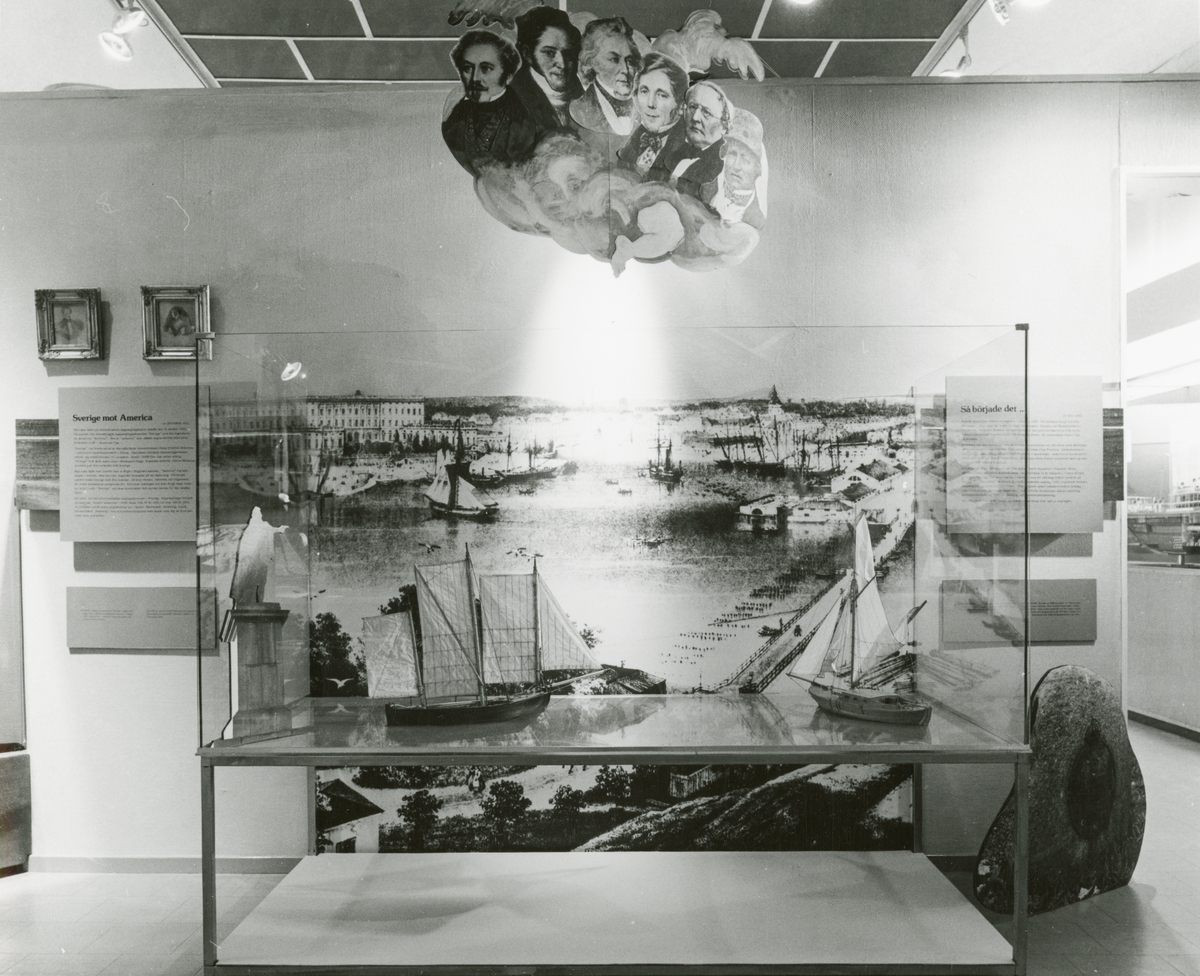 Utställningen "Kungliga seglare och seglande kungar". Monter som presenterar kappsegligens historia, "Sverige mot Amerika".