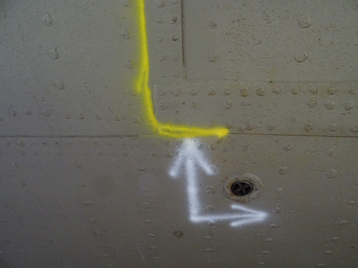 Isbrytaren SANKT ERIK på Stockholms Reparationsvarv. Spraymarkeringar på skrovsidan.