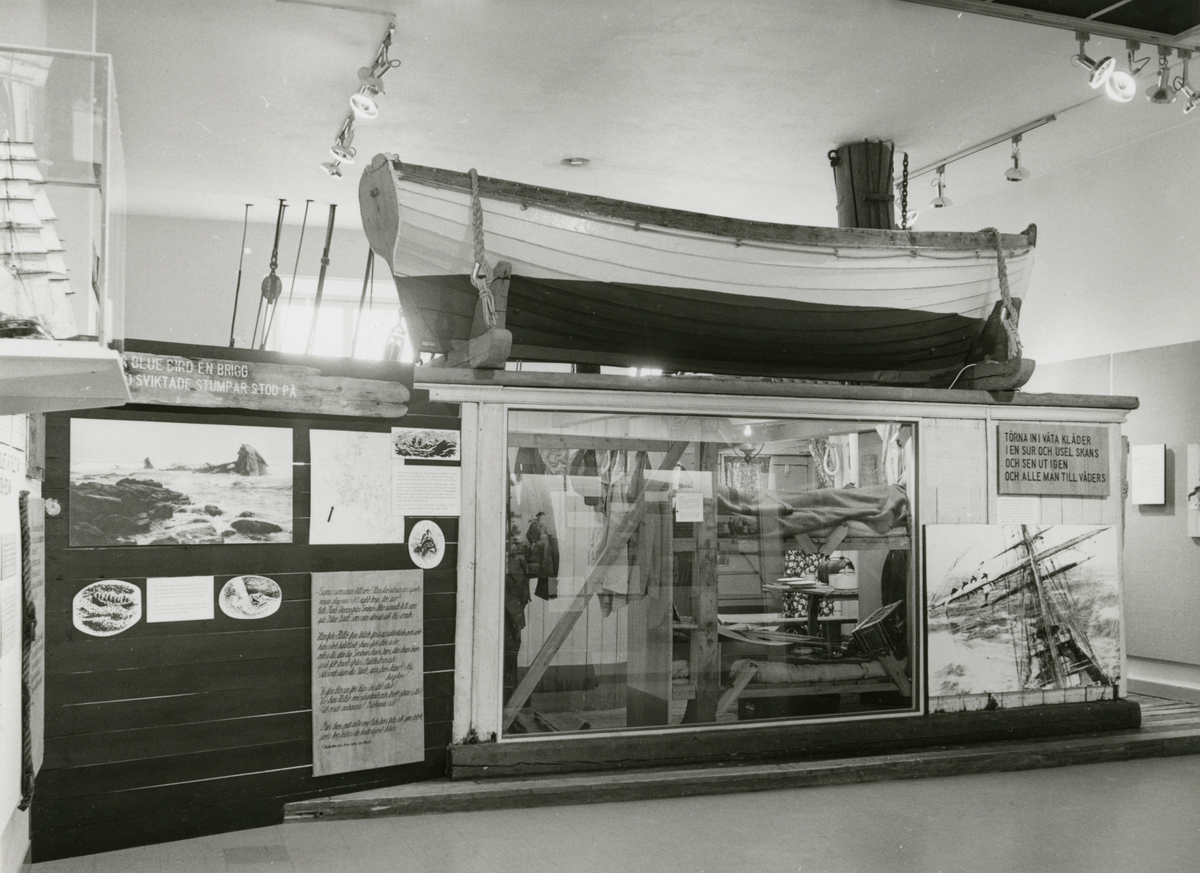 Utställningen "Hans namn var Frithiof Andersson om Evert Taube". "Det var Blue Bird en brigg som med sviktade sumpar stod på" och "Törna in i våta kläder i en sur och ursel skans och sen ut igen och alle man till väders". Monter föreställande en skans samt en livbåt.