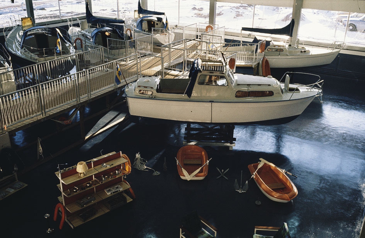 Interiör av visningshallen i Albin Marins anläggning i Gustavsvik, Kristinehamn
