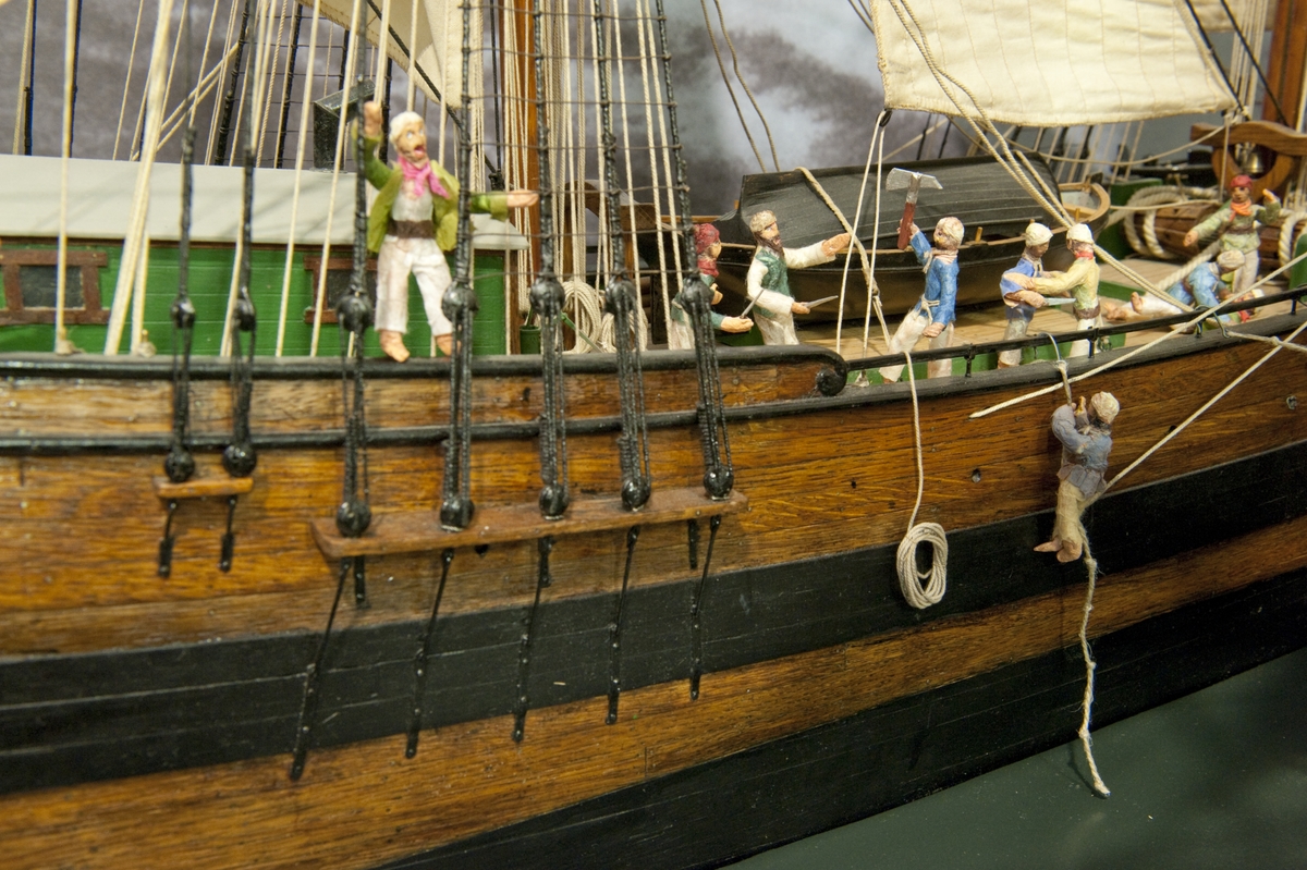 Små dockor tillverkade att passa modeller till utställningen "Shipping Shopping
