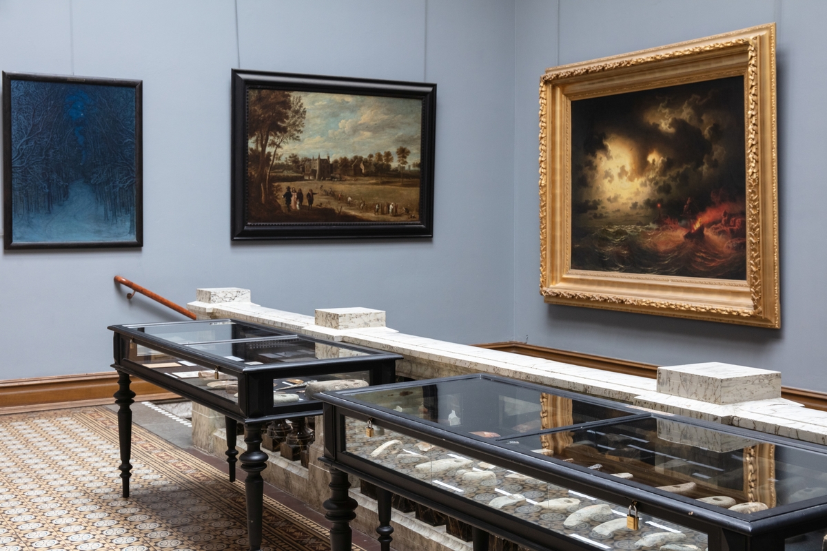 Vänersborgs museum, trapphallen. Utställning om Vänersborgs läroverks fornsakssamling