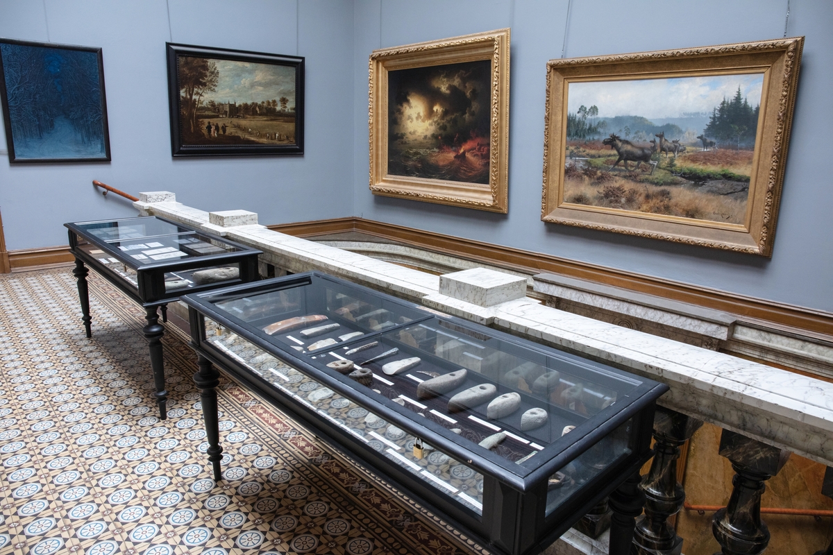 Vänersborgs museum, trapphallen. Utställning om Vänersborgs läroverks fornsakssamling