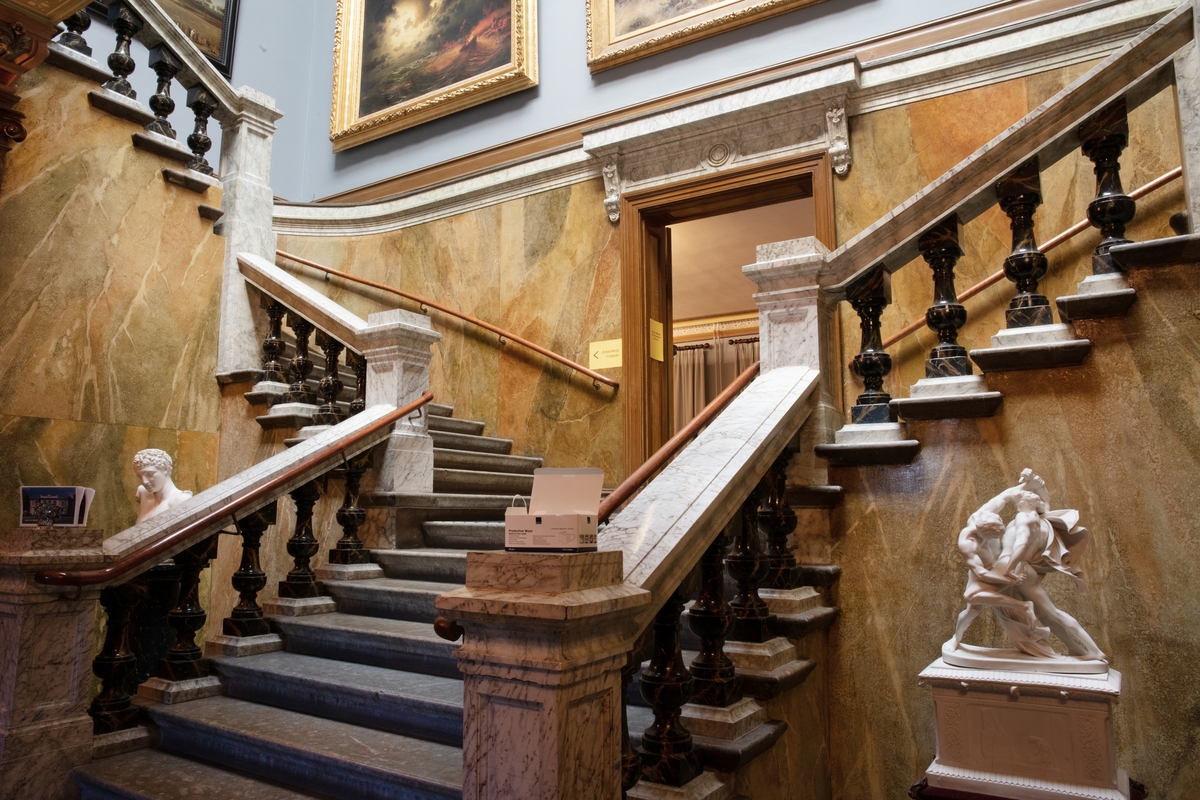 Titel: Vänersborgs museum. Informationsskylt, enkelriktat i trappan