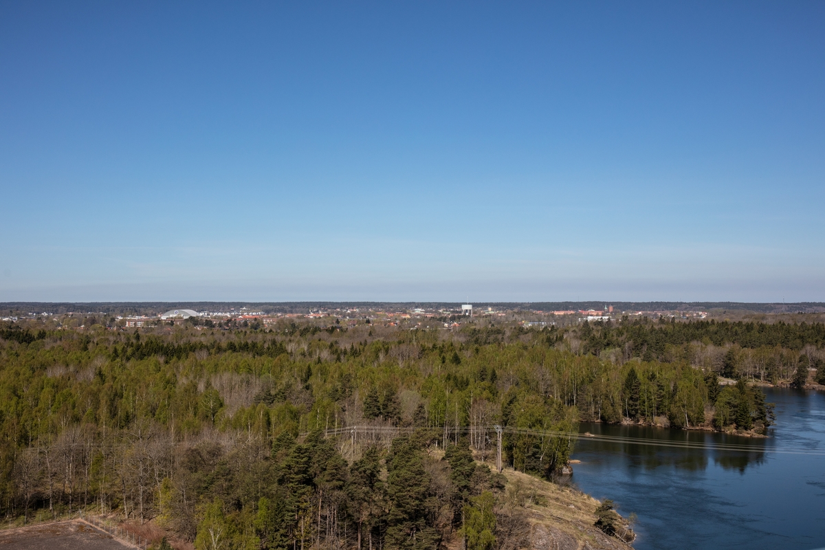 Vargön Alloys AB. Utsikt över Vänersborg från smältverkets skorsten
