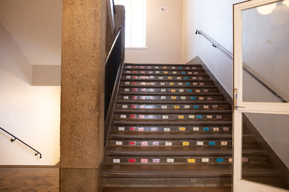 Vänersborg, Norra skolan. Trapphus, "multiplikationstrappa"