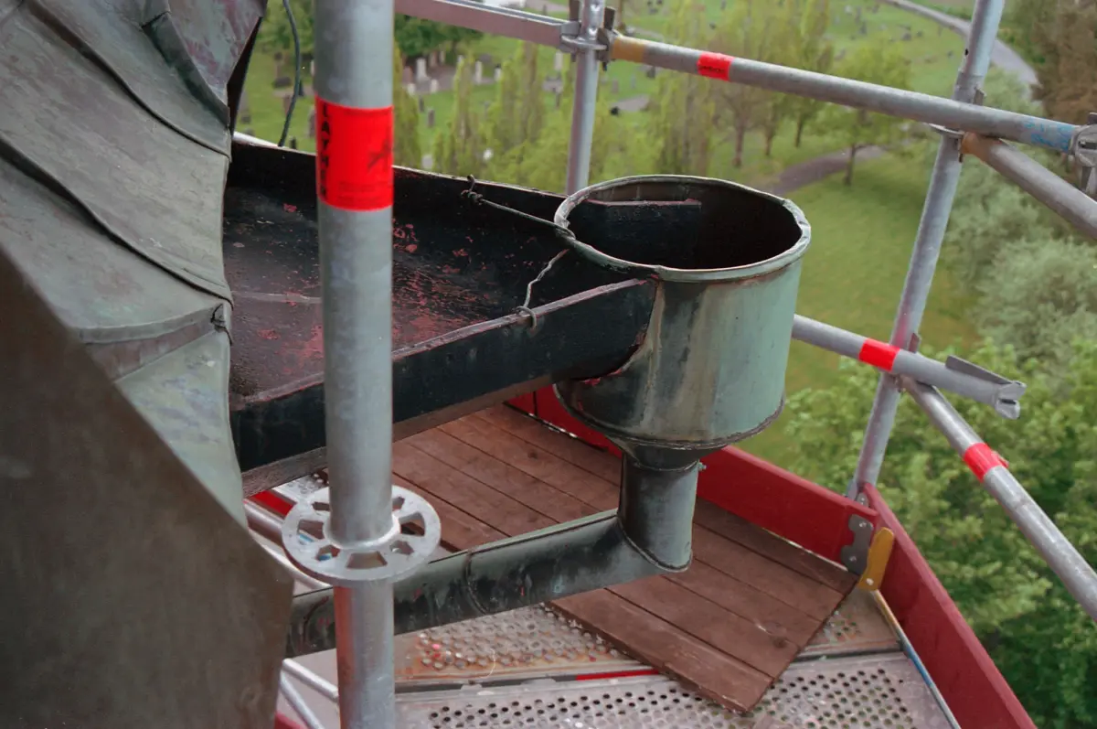 Högsäters kyrka renovering tornfasader 2009, vattenutkast, tornspirans tak, SV