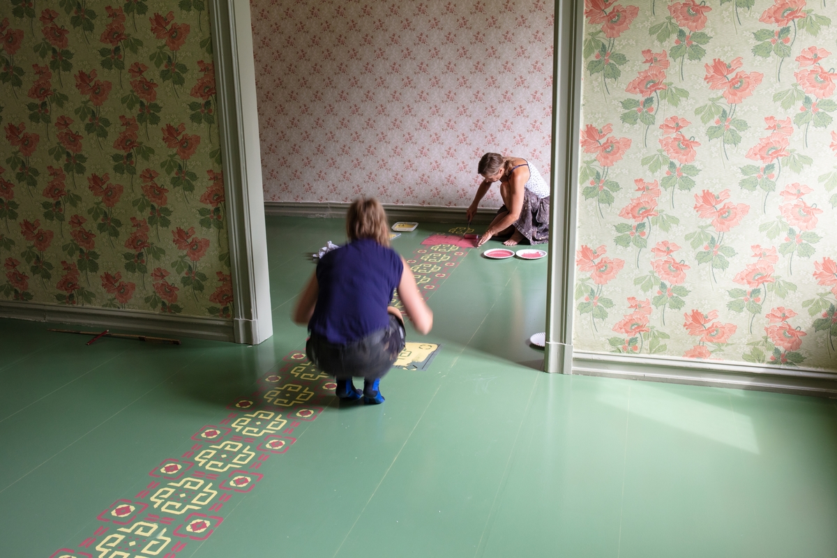 Vänersborgs museum. Schablonmålning av golvet i vaktmästarbostaden.