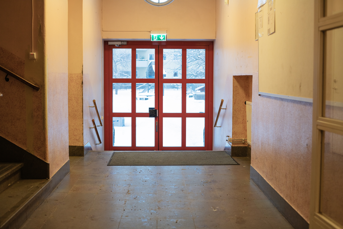 Vänersborg. Norra skolan, entrén utanför matsalen