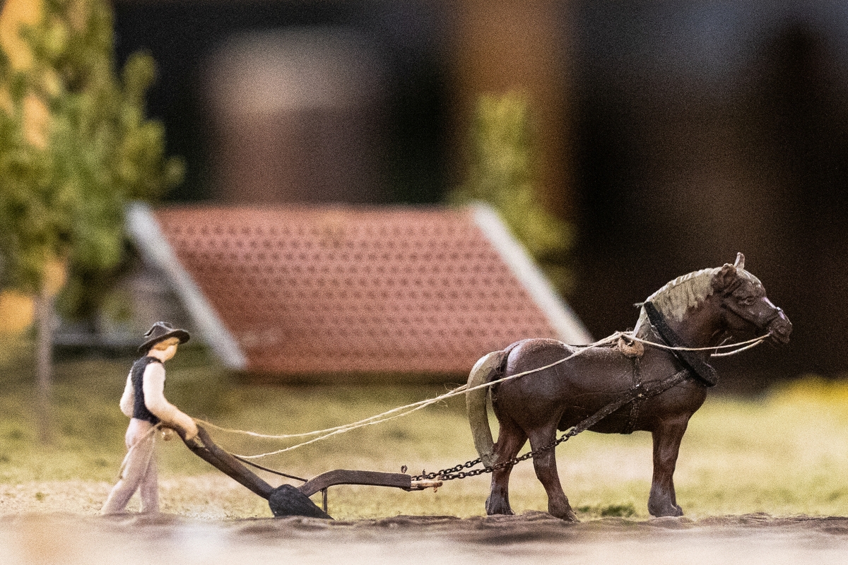 Dalslandsgård. Vinnsäter, Järbo socken. Detalj av modell, plöjning