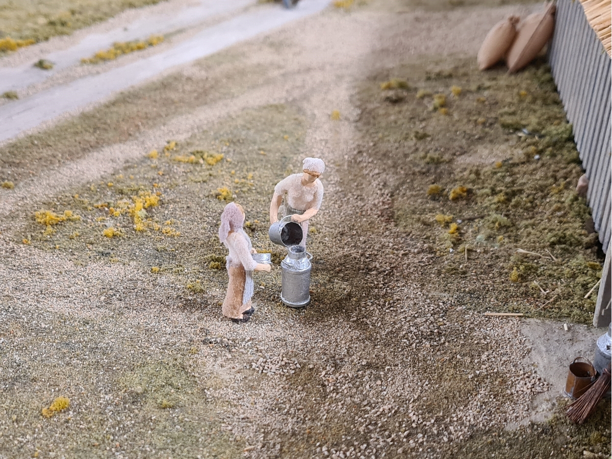 Dalslandsgård. Vinnsäter, Järbo socken. Detalj av modell, mjölken tas omhand