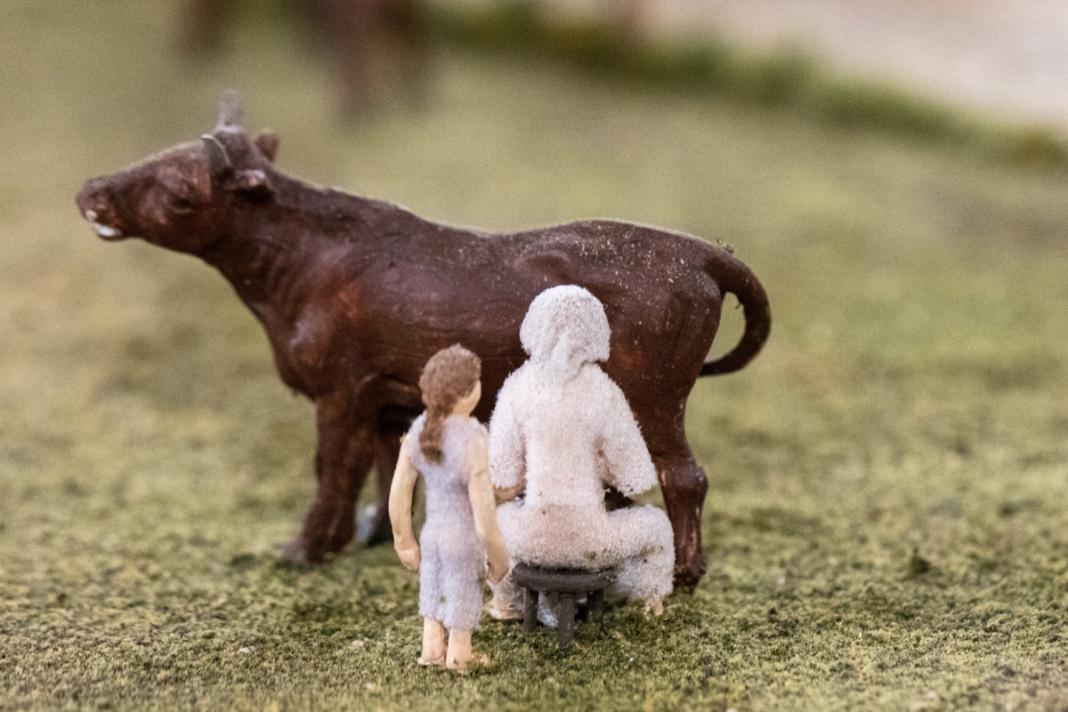 Dalslandsgård. Vinnsäter, Järbo socken. Detalj av modell, mjölkning