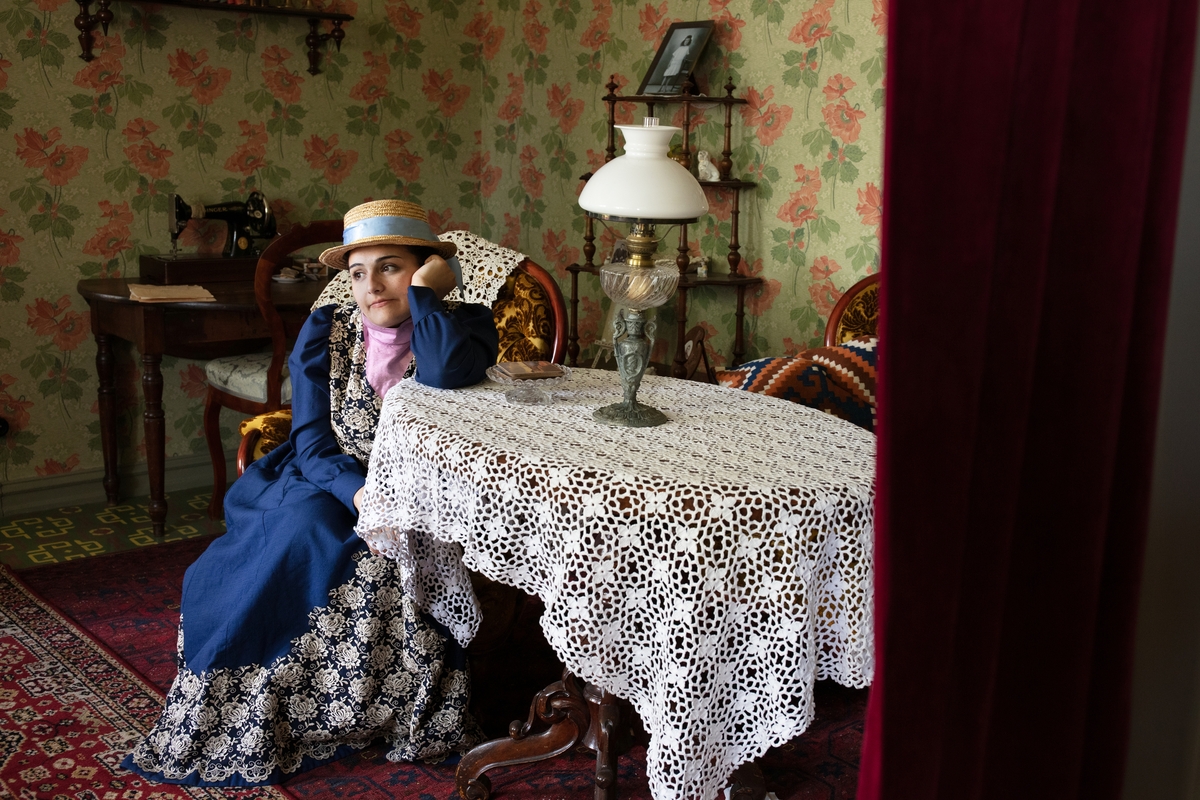 Vänersborgs museum, vaktmästarbostaden. Nur Homsi klädd i sekelskifteskläder
