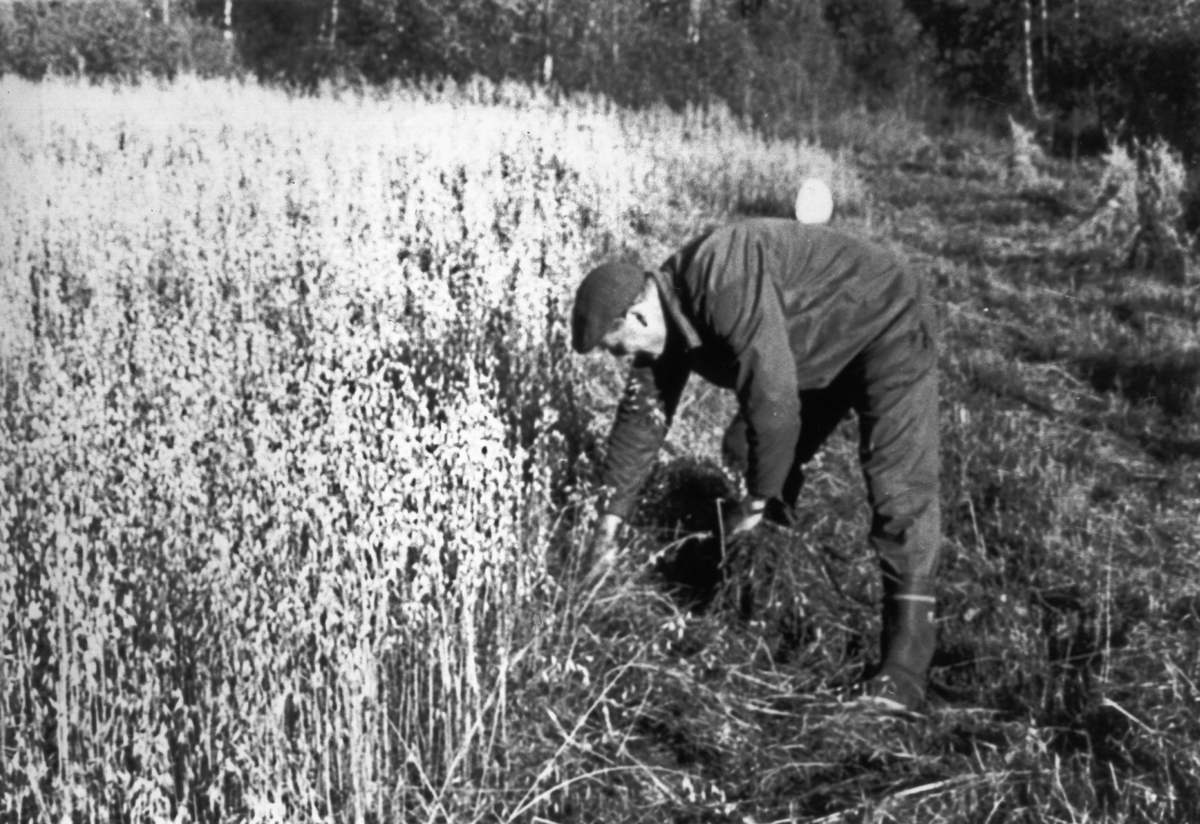 Tvärred. Hans Kronlund Arnungared tar upp och binder havre