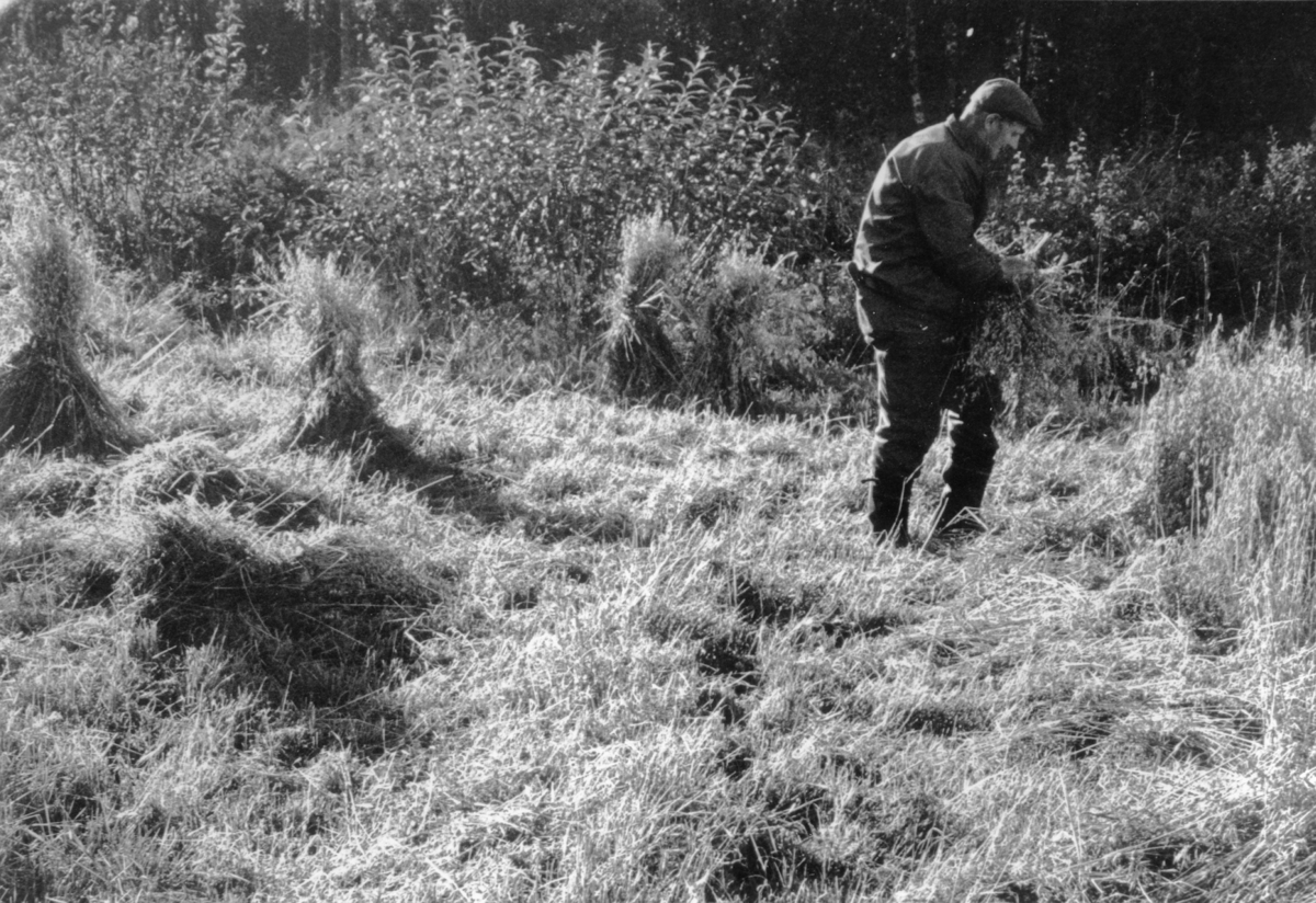 Tvärred. Hans Kronlund Arnungared knyter havrekärvar/neker
