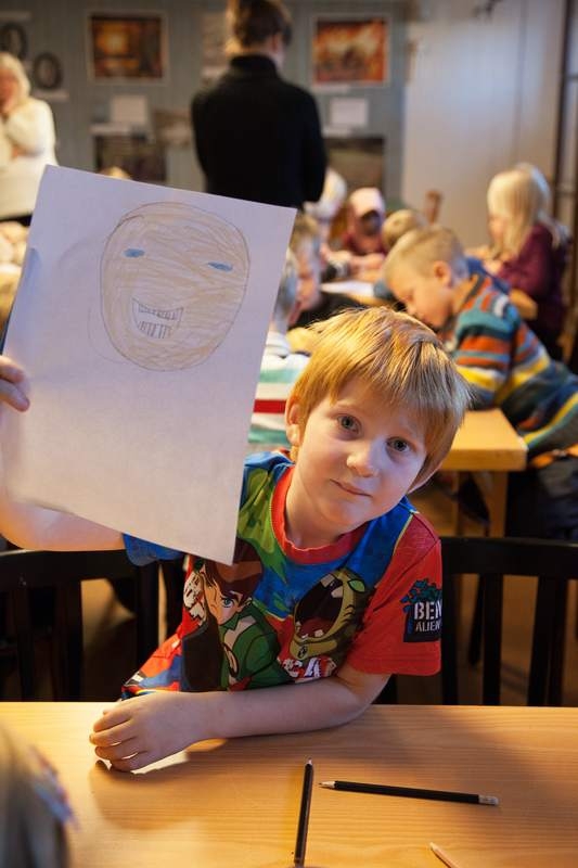 Vänersborgs museums pedagog Jennie Ardin har besök av en skolklass från Rånnumskolan.