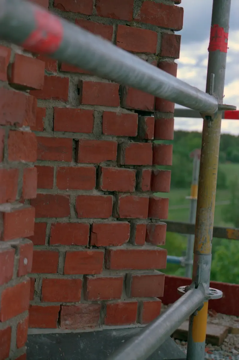 Högsäters kyrka renovering tornfasader 2009, kontrefor, detalj, SV, N-sidan, plan 3, under renovering