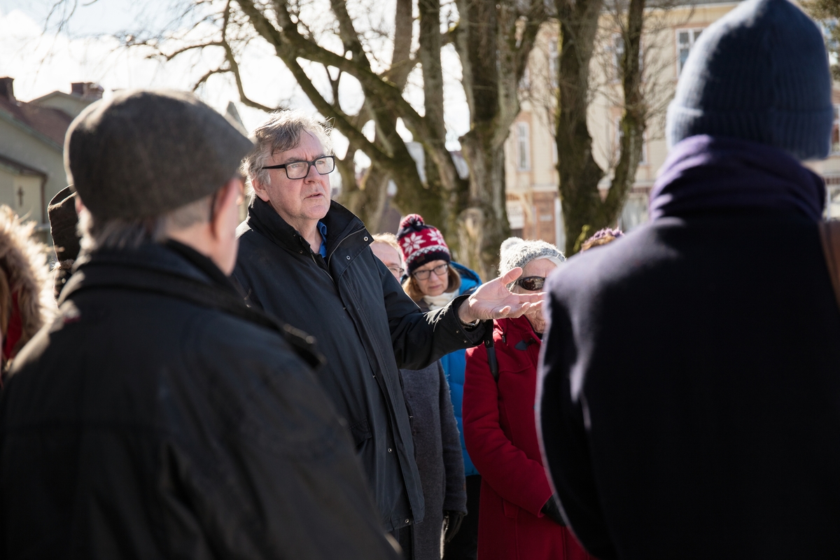 Vänersborgs museum, museets dag 2018. Stadsträdgårdsmästare Hans Wallmander berättar om den nya parken framför museet.