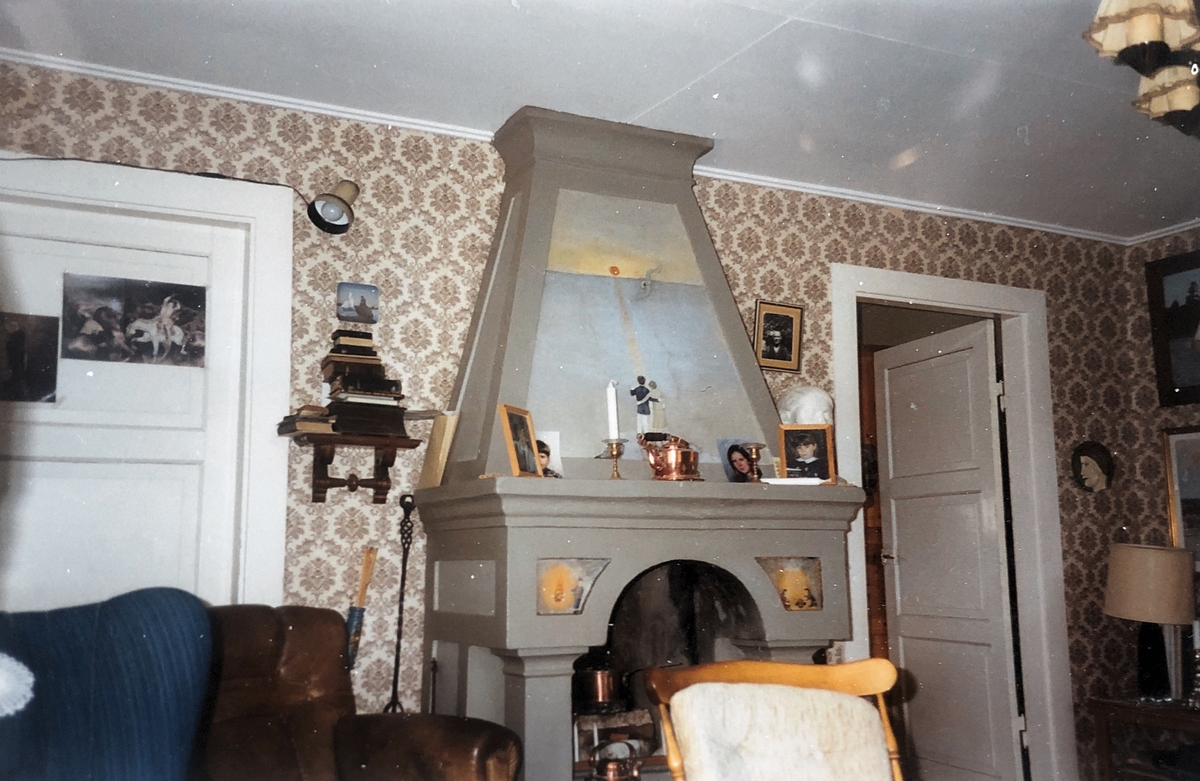 Vänersnäs, Åkerslund. Emil Karlssons målning på en öppen spis