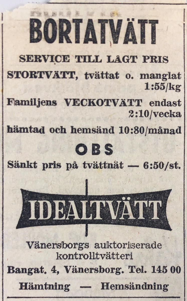 Vänersborg. Idealtvätten, reklam för veckotvätt