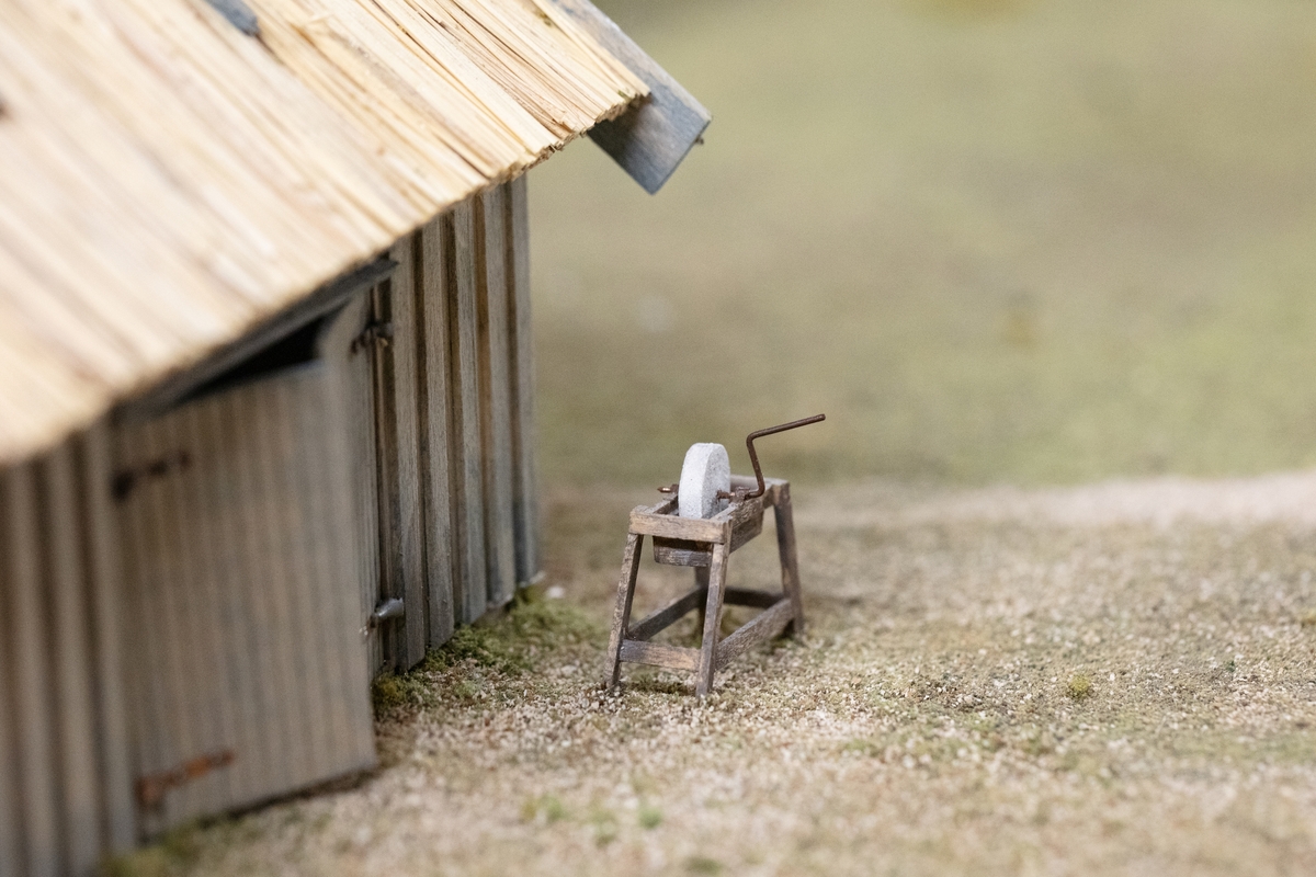 Dalslandsgård. Vinnsäter, Järbo socken. Detalj av modell, slipsten